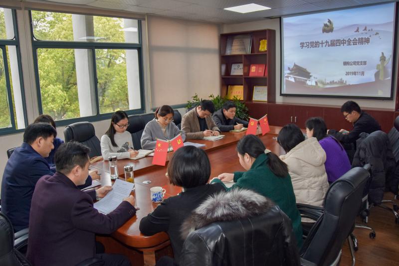 11月26日下午,钢构公司党支部结合“不忘初心、牢记使命”主题教育,组织全体党员认真学习贯彻党的十九届四中全会精神,重点学习党的十九届四中全会《公报》、《中共中央关于坚持和完善中国特色社会主义制度、推进国家治理体系和治理能力现代化若干重大问题的决定》和习近平总书记关于党的十九届四中全会《决定》的说明。